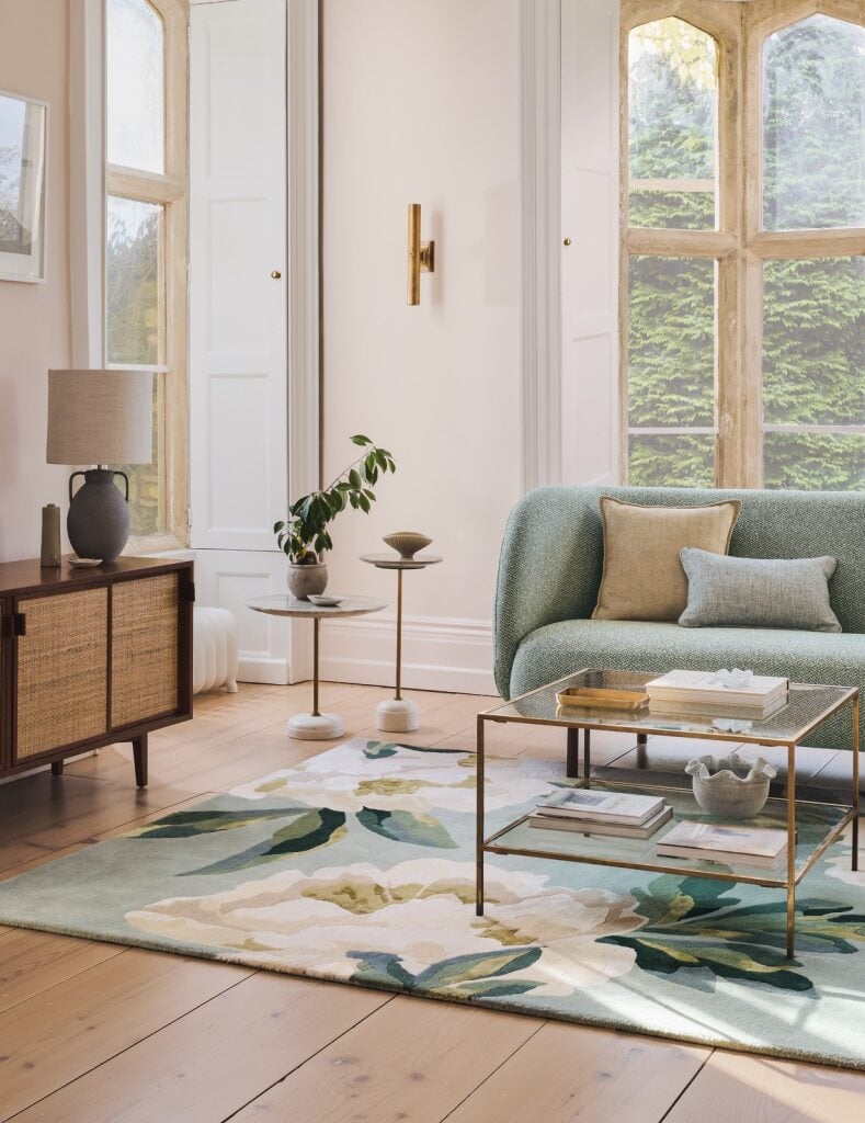 Ideale per impreziosire ambienti classici e moderni, questo tappeto in lana soffice e trapuntato a mano dà vita alle splendide fioriture del motivo Odelia ed é un magnifico punto focale per lo spazio. Sapientemente lavorato a mano secondo antiche tradizioni, i contorni del disegno sono estremamente definiti, con tocchi di viscosa che aggiungono una raffinata lucentezza. Il livello di maestria artigianale e la incantevole tattilità di questo lussuoso tappeto sono assolutamente straordinari.